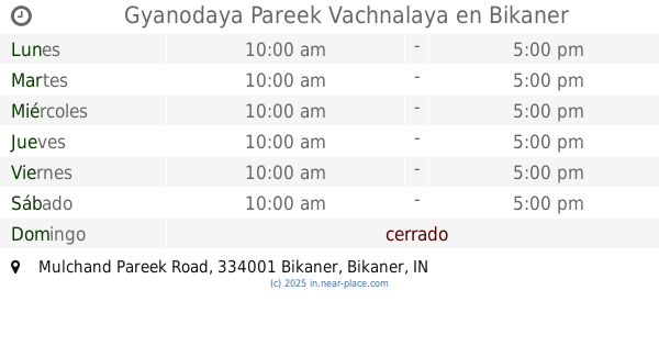 | Martes | abierto 24 horas | |||||